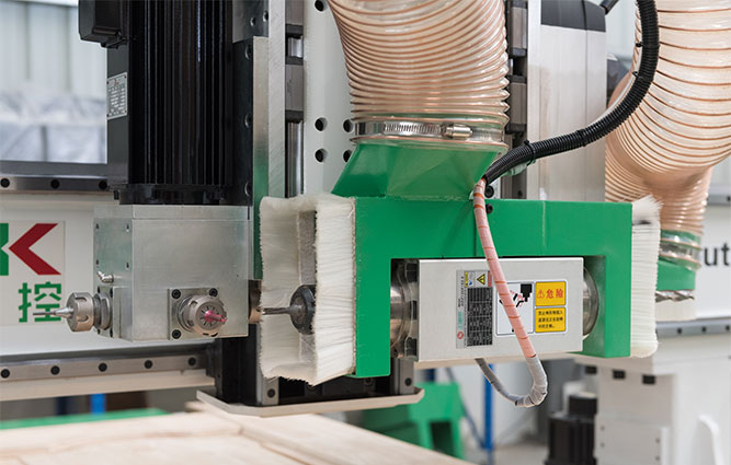 2、側(cè)面鎖孔采用銑刀擺動(dòng)裝置、變頻電機(jī)、真空吸附門(mén)板,自動(dòng)銑削成型。