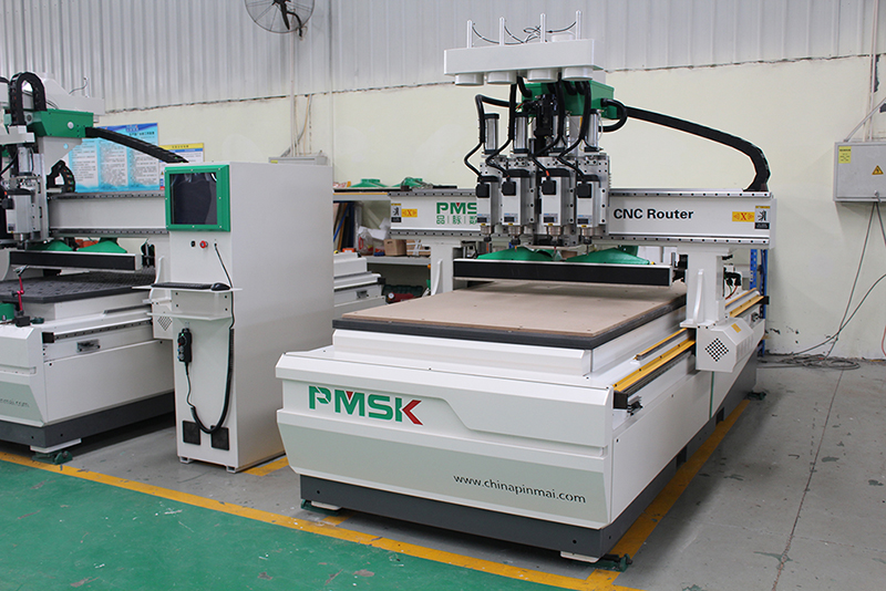 四工序開料機是一款入門型板式家具生產設備。四個頭氣動切換實現打孔、拉槽、切割、雕刻等功能。四主軸并排安裝在機頭上,換刀速度更快,加工精度高!而且四工序開料機的功能也比較全面,既能做板式家具開料又可以做柜門銑形。做柜體加工一天生產量大約四五十張板,很多老板在買