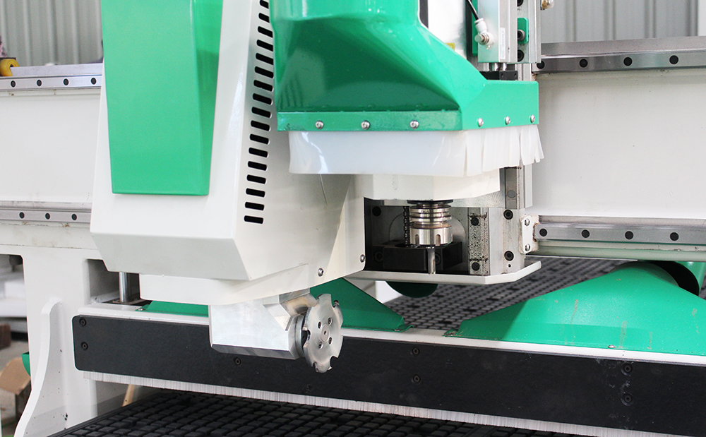 數控拉米諾開料機板式家具開料設備中的一種,主要是數控化解決板式家具制作中對板材進行鉆孔、銑槽、切割、雕刻、銑形等工序。拉米諾開料機機器機頭結構部分必須加裝四軸旋轉鋸,用鋸片進行銑拉米諾隱形件所需月牙槽。就目前市面上比較先進的數控拉米諾開料機來說,機器頭部結構搭配了9KW自動換刀主軸、排鉆組、四軸旋轉鋸三大機械部件。機器自動換刀主軸配合12把容量刀庫,可以解決各種復雜生產工序,包括銑形,雕刻,鏤空等,排鉆組能夠提高機器做定制家具打孔效率,四軸旋轉鋸用鋸片銑拉米諾月牙槽,效率高,精度高。并且數控拉米諾開料機還能夠加工U型扣、木得易等隱形連接件所需的安裝槽。