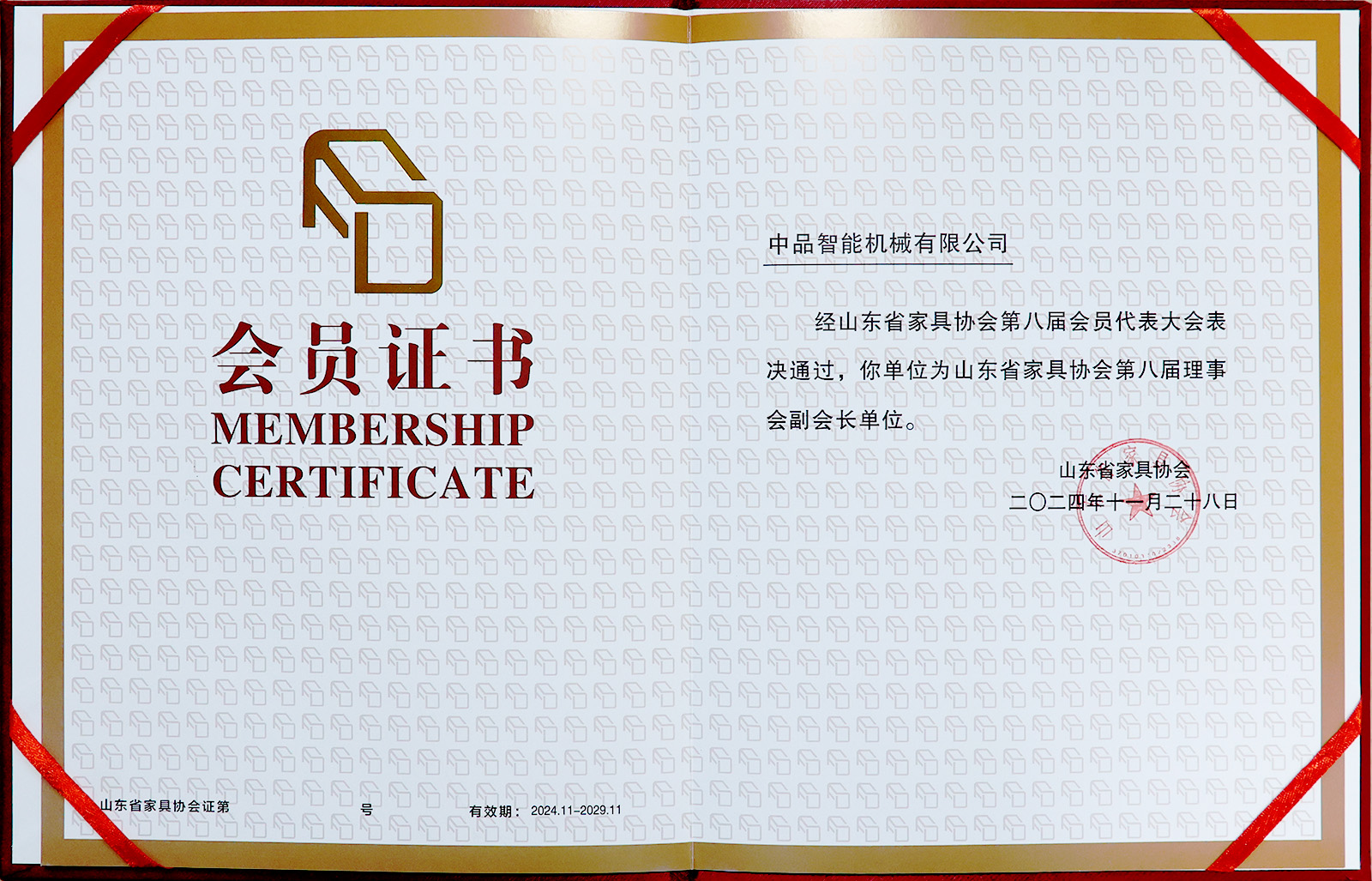中品智能機械有限公司自成立以來,始終秉持“科技創新,品質為先”的企業理念,不斷追求卓越與突破。在智能制造技術的研發與應用上,公司投入大量資源,致力于提升家具生產的自動化、智能化水平,為行業樹立了標桿。此次成為山東家具協會的副會長單位,標志著中品智能機械有限公司在行業內的地位進一步提升,也為其在未來的發展中注入了新的動力與活力。