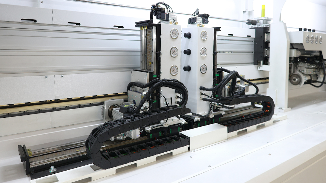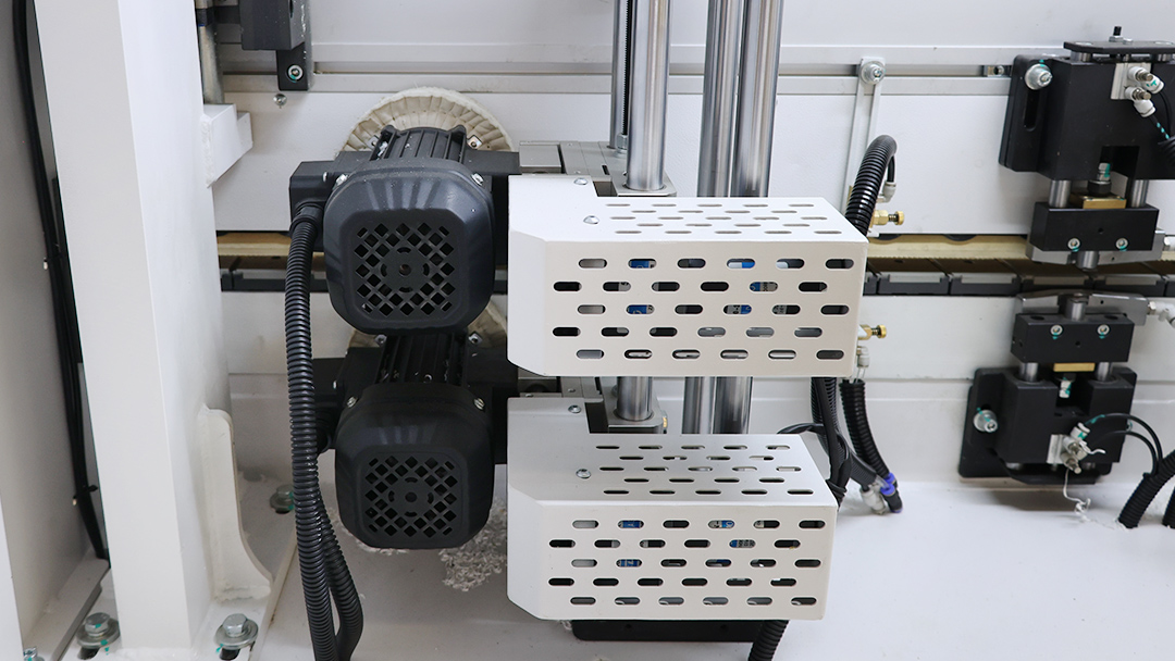 The servo edge scraping mechanism can automatically adjust its position according to the thickness of the edge banding tape to achieve perfect edge trimming.